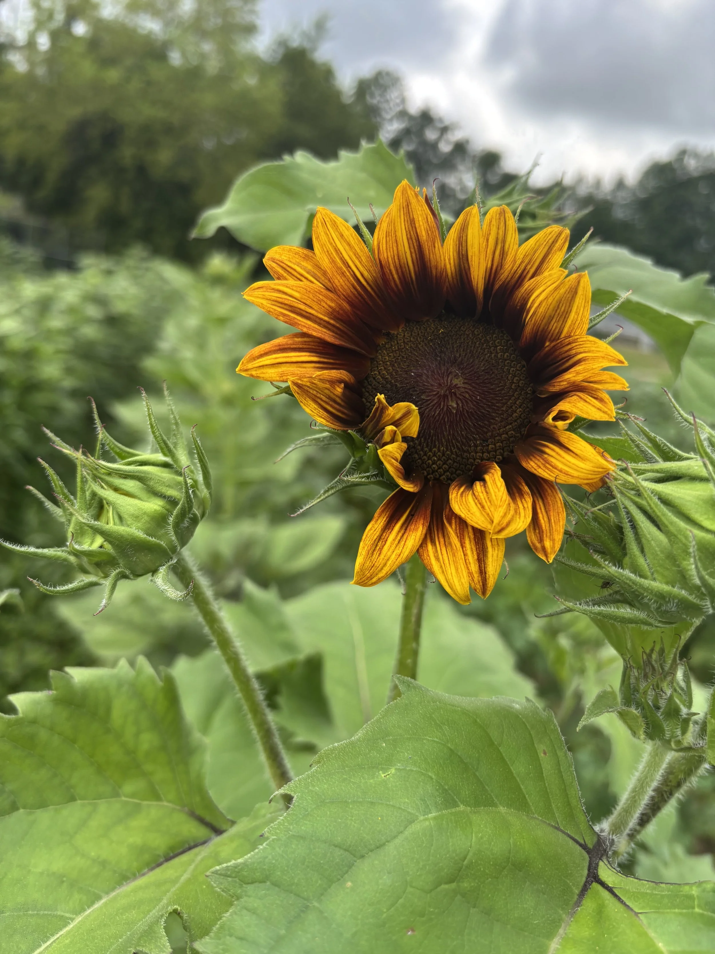 Sunflowers 3 rows further back- only walk in the sunflower rows to not step on the plants growing beside them. Please do not pick from these neighboring crops. These were used not just as cut flowers, they also came in handy to draw more pollinators to crops nearby.
