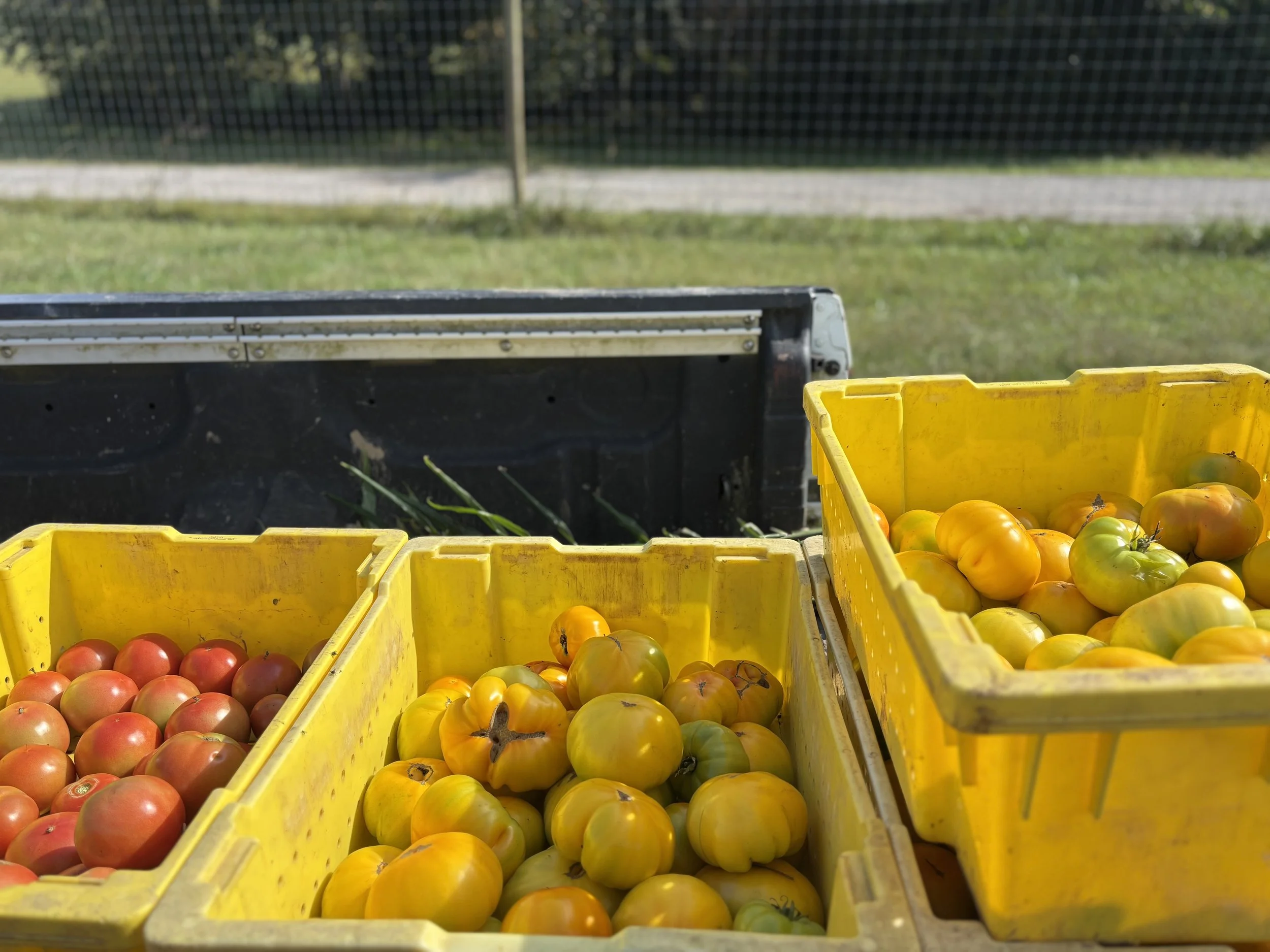 The tomato tunnel is beginning to slow down as cooler nights creep in, but we expect at least one more solid week of vine ripened tomatoes. After that, they will begin to blush more slowly and finish ripening on your kitchen counter.