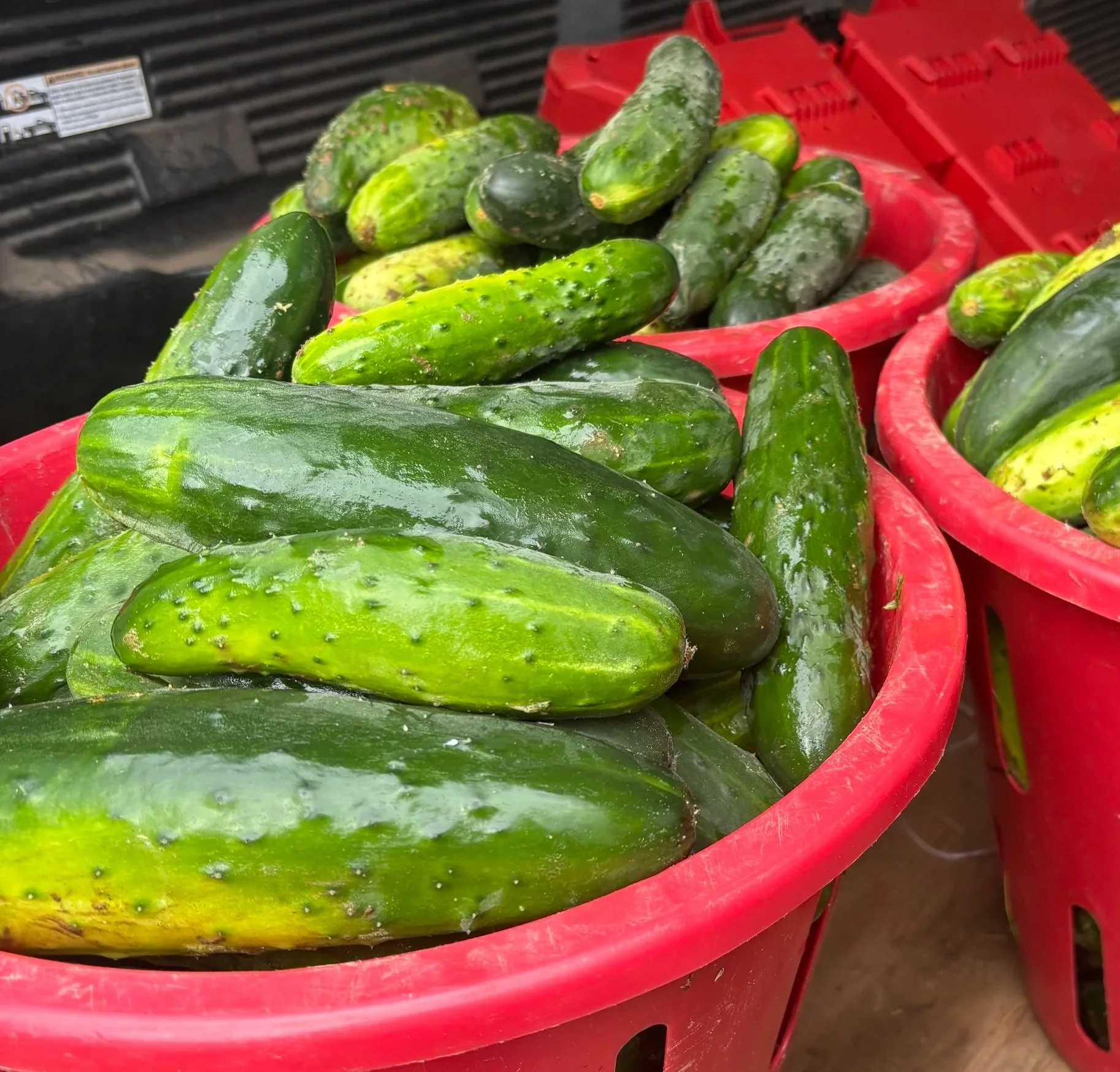 The cucumbers and squash are holding steady this week. With more sun on the way and field cucumbers beginning to produce, we expect them to stick around for a few more weeks. Cherry tomatoes are also just around the corner, and if the weather holds, we could see a good harvest of them as early as next week.