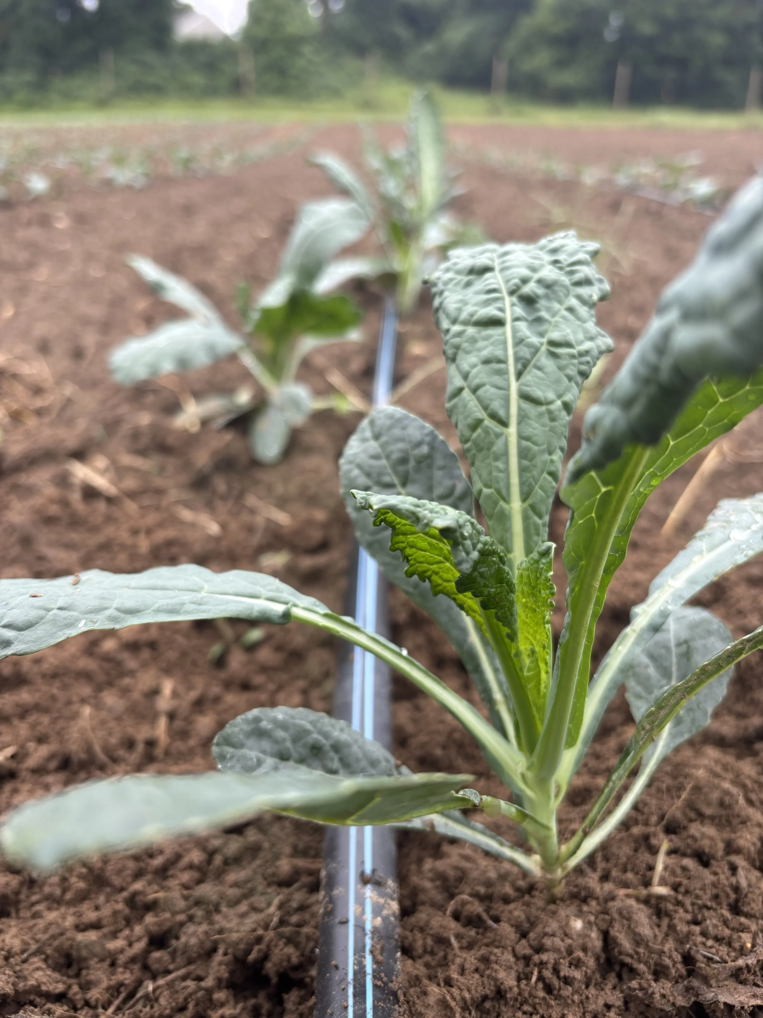 Young Lacinato Kale planted in rows